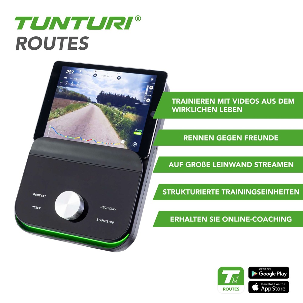 Mit der kostenlosen Version von Tunturi Routes hast Du immer Zugriff auf 15 Videorouten, mit der kostenpflichtigen Version hast Du Hunderte.