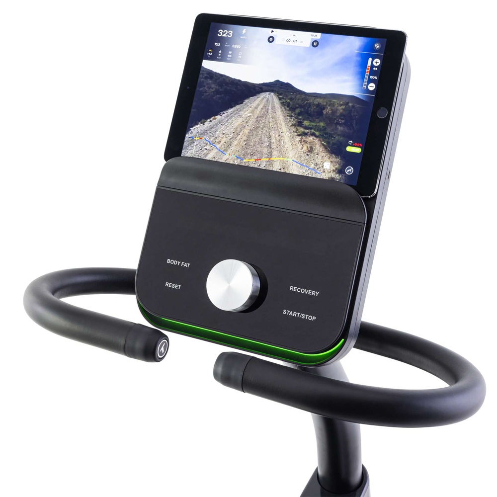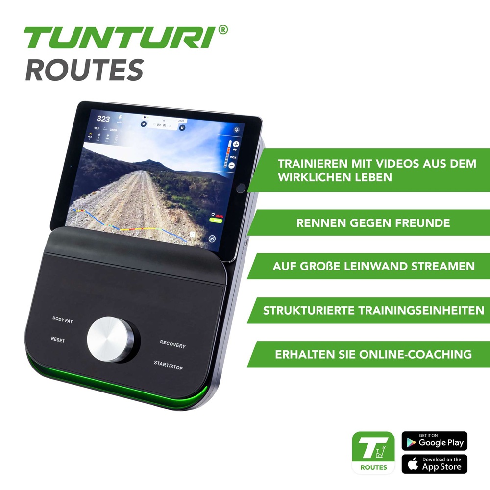 Der Monitor verfügt über eine Tablet-Halterung, damit Du während Deines Trainings einen Film oder eine Serie anschauen oder eine App mit Videorouten wie Tunturi Routes oder Zwift nutzen kannst.