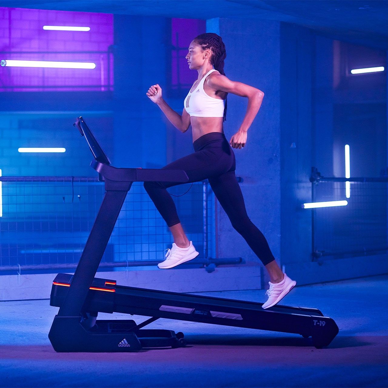 Das adidas T-19 Laufband überzeugt mit einem kraftvollen 3.5-PS-Motor und ermöglicht Geschwindigkeiten von bis zu 20 km/h.
