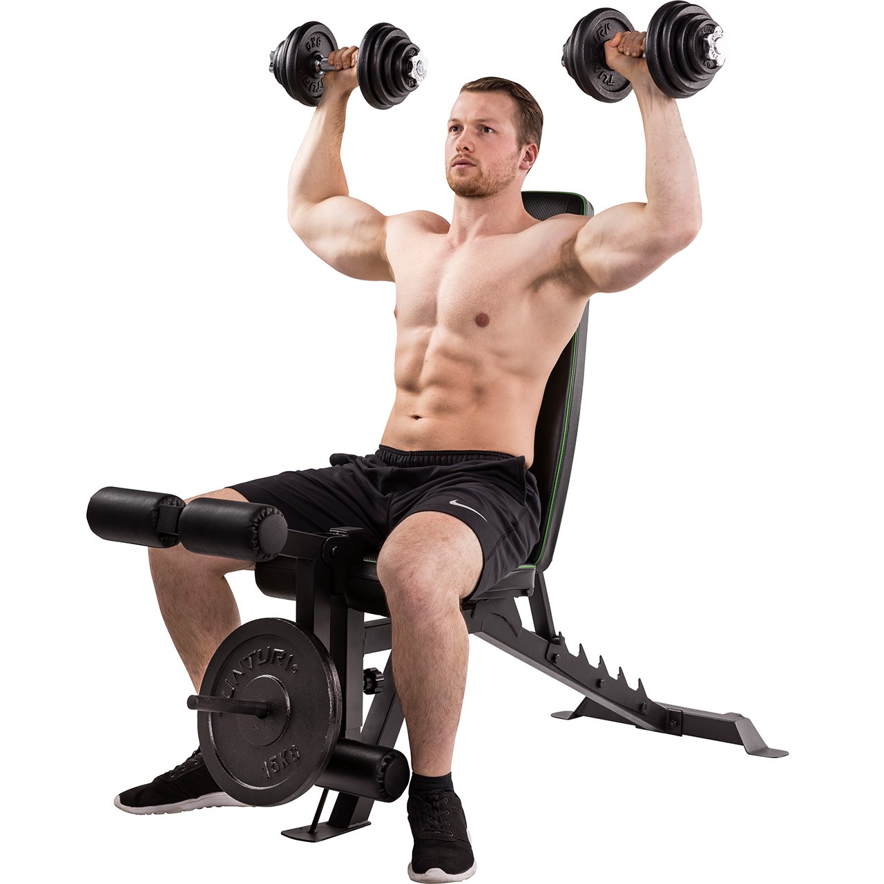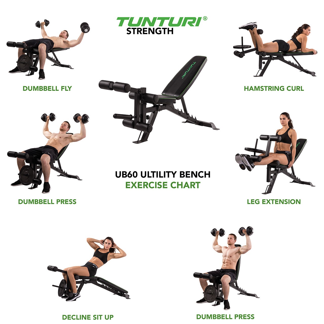 Die Multibank Utility Bench UB60 von Tunturi ist für herkömmliche sowie für olympische Hantelscheiben konzipiert worden.