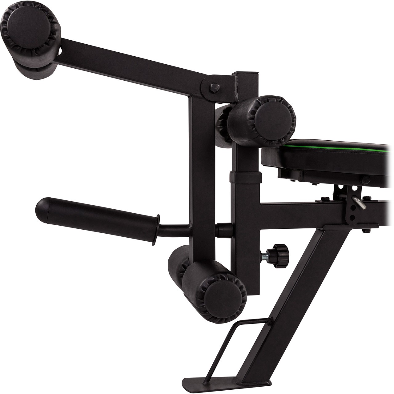 Die Sitzneigung kann mittels Winkel eingestellt werden. Der integrierte Beinstrecker ist höhenverstellbar, alle Schaumrollenposter sind vinylbeschichtet.
