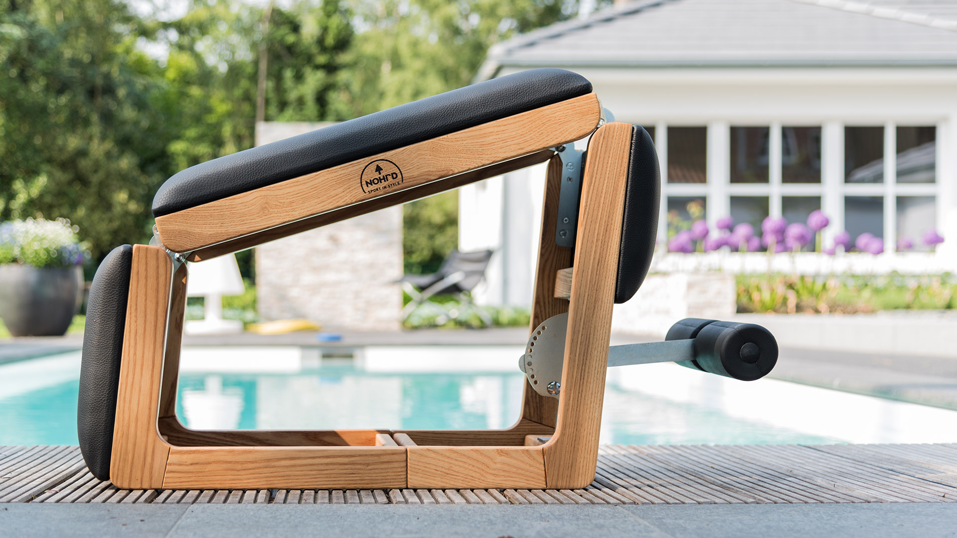 Das exklusive Trainingsgerät ist in geöltem Eschen-, Eichen-, Kirschbaum- oder Nussbaumholz und wahlweise mit Kunst- oder Echtlederbezug sowie als beliebte Club-Variante verfügbar.