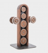 Der stabile Hantelturm aus massivem Holz, pulverbeschichtetem Stahl und bebürstetem Edelstahl bietet Platz für einzelne Hantelscheiben und vollbeladene Hanteln.