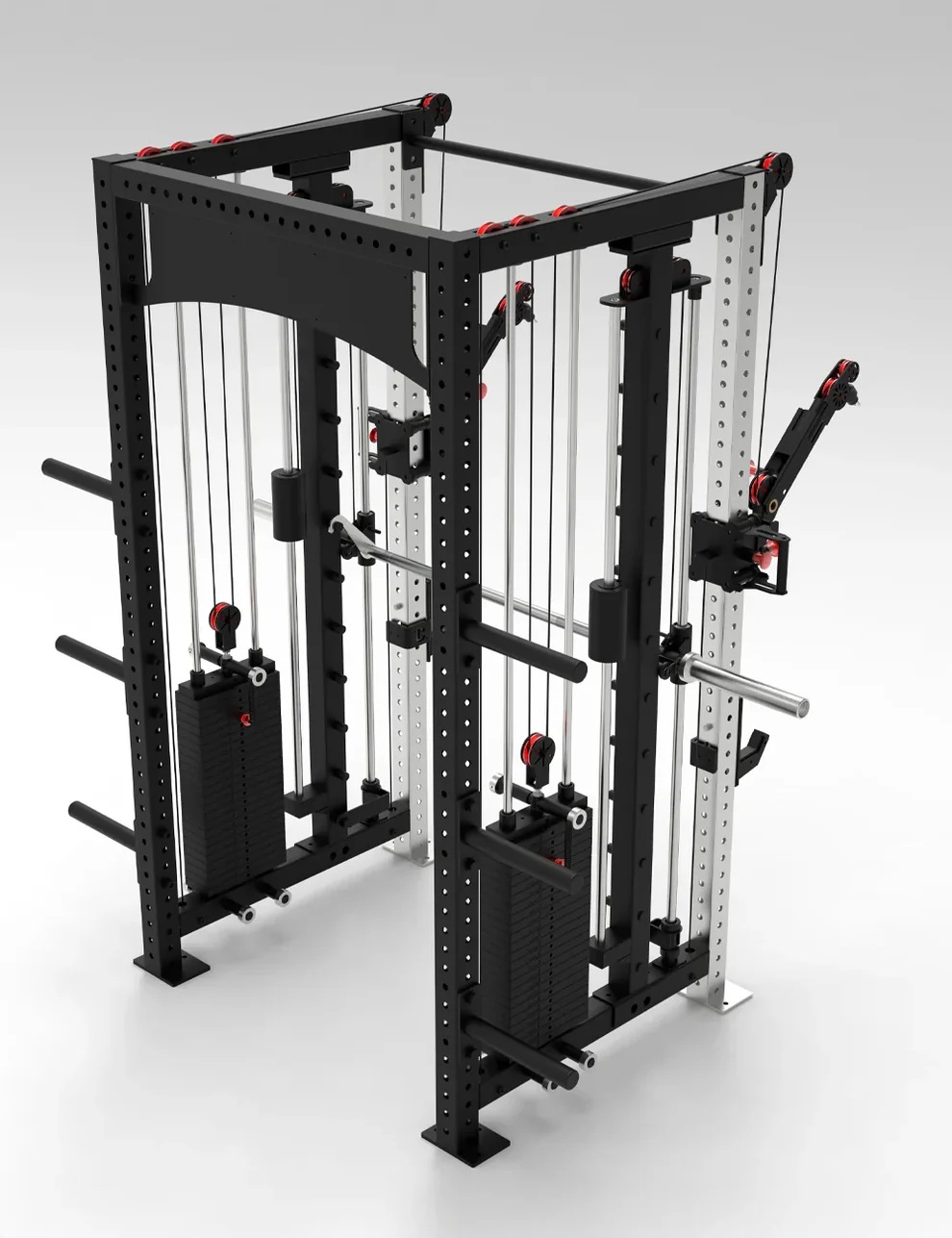 Das A-PEX Rack vereint alles, was du brauchst: Power Rack, Kabelzug mit 2x100kg Stacks und integrierte Smith Machine - auf unter 5m2.